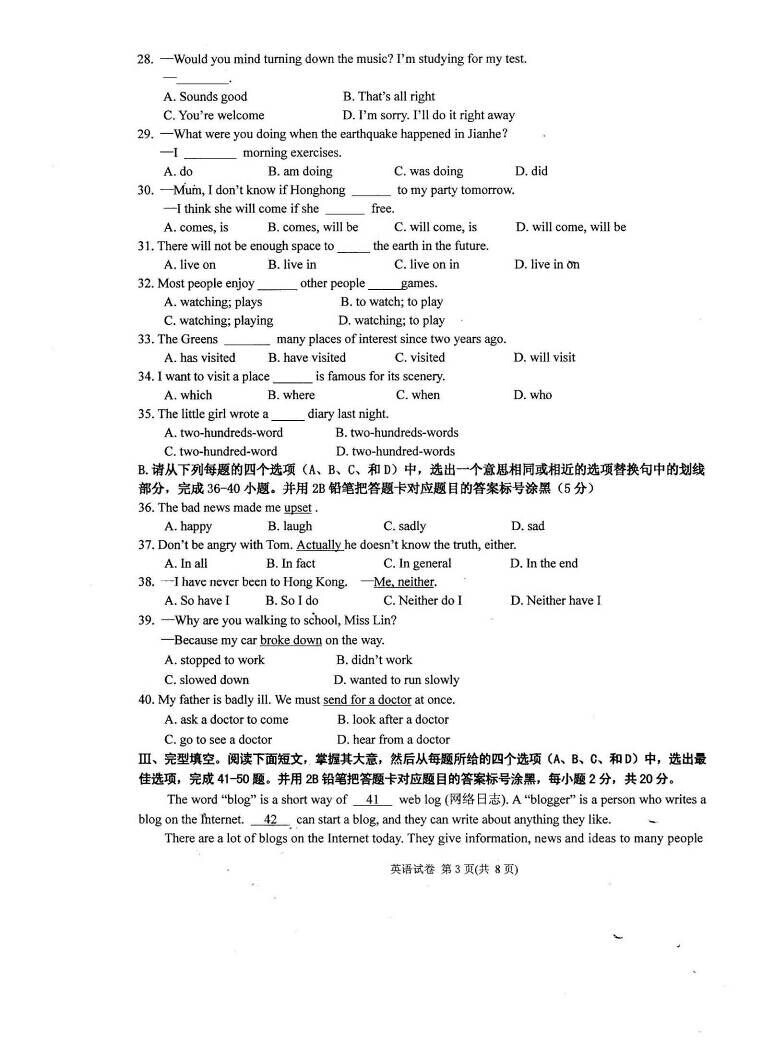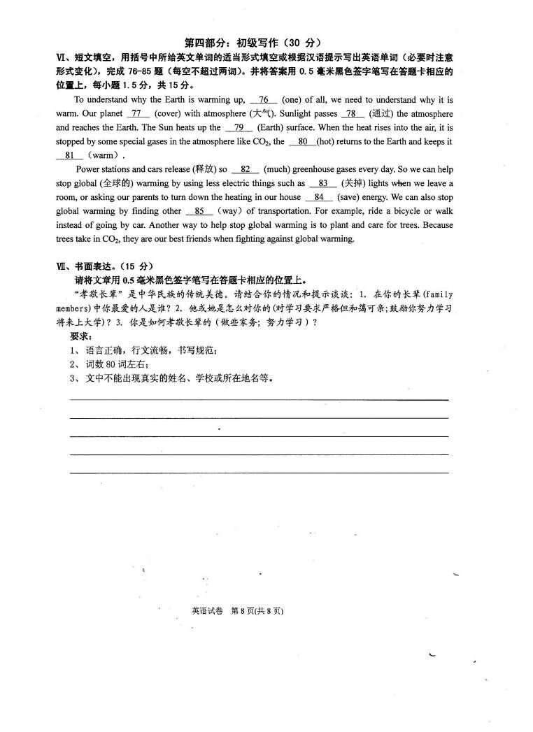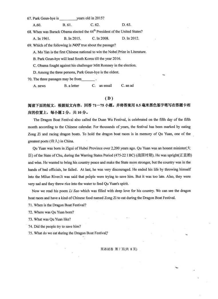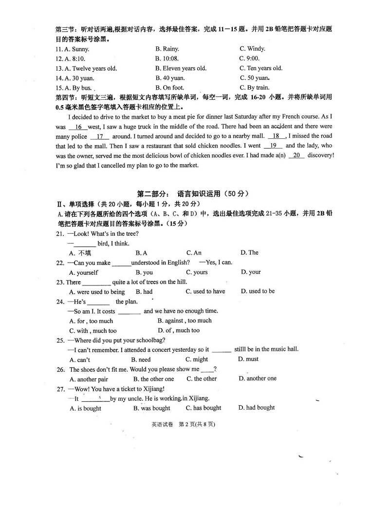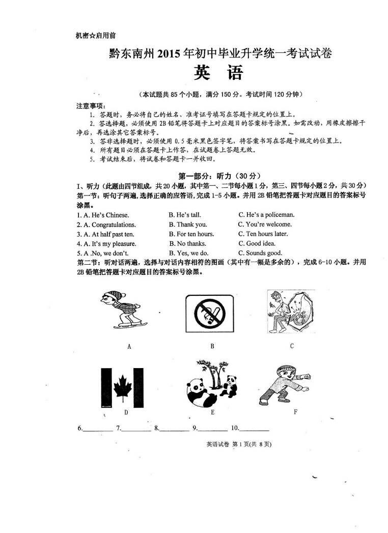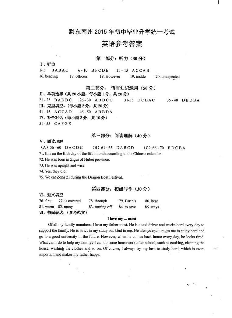 2015年貴州黔東南中考英語試題及答案(已公布)
