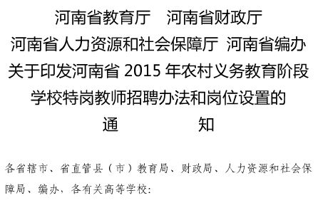 2015河南特崗教師招聘通知