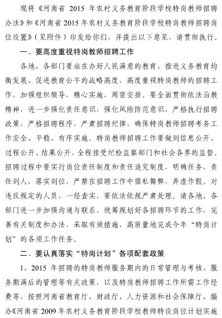 點擊查看:2015年河南特崗教師招聘辦法
