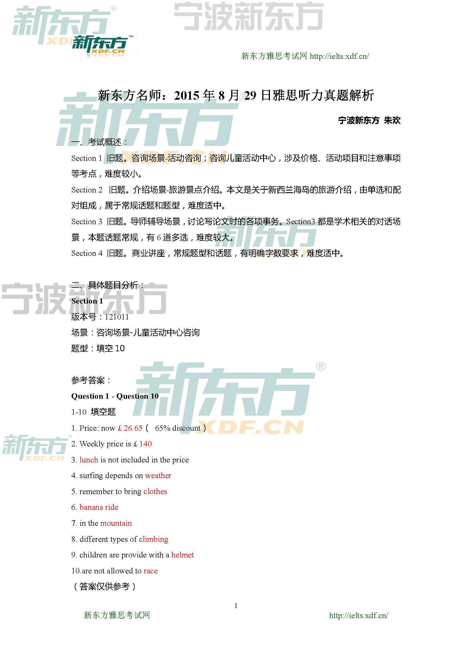 2015年8月29日雅思聽力真題及解析(新東方)