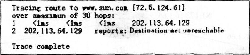 15、 在一臺主機(jī)上用瀏覽器無法訪問到域名為www.Still.com的網(wǎng)站,并且在這臺主機(jī)上執(zhí)行tracert命令時有如下信息