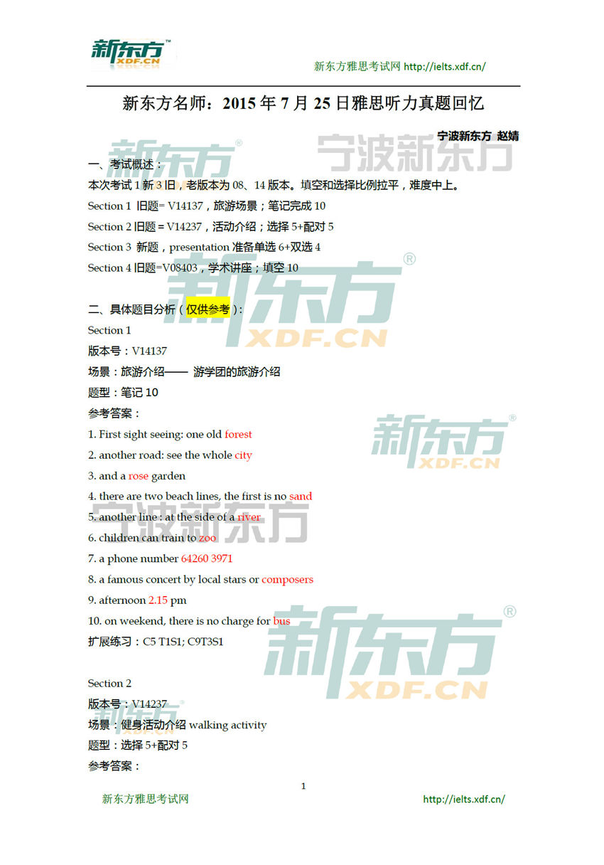新東方:2015年7月25日雅思聽力真題