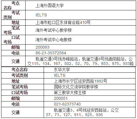 接英國(guó)文化教育協(xié)會(huì)通知,上海外國(guó)語(yǔ)大學(xué)和上海東華大學(xué)從即日起成為雅思考試在上海市的考場(chǎng), 目前已向廣大考生開(kāi)放報(bào)名。這兩個(gè)考場(chǎng)的首場(chǎng)雅思考試將于2015年10月24日舉行。歡迎各位考生登錄雅思考試報(bào)名網(wǎng)站 http://ielts.etest.net.cn or http://ielts.etest.edu.cn報(bào)名考試,并預(yù)祝您考試成功!