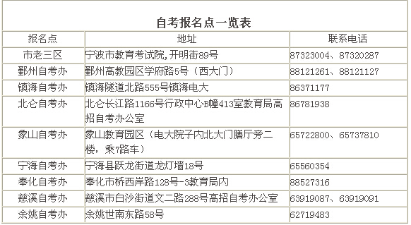 注:鄞州戶籍的新老考生請持身份證、戶口簿到鄞州自考辦報名。