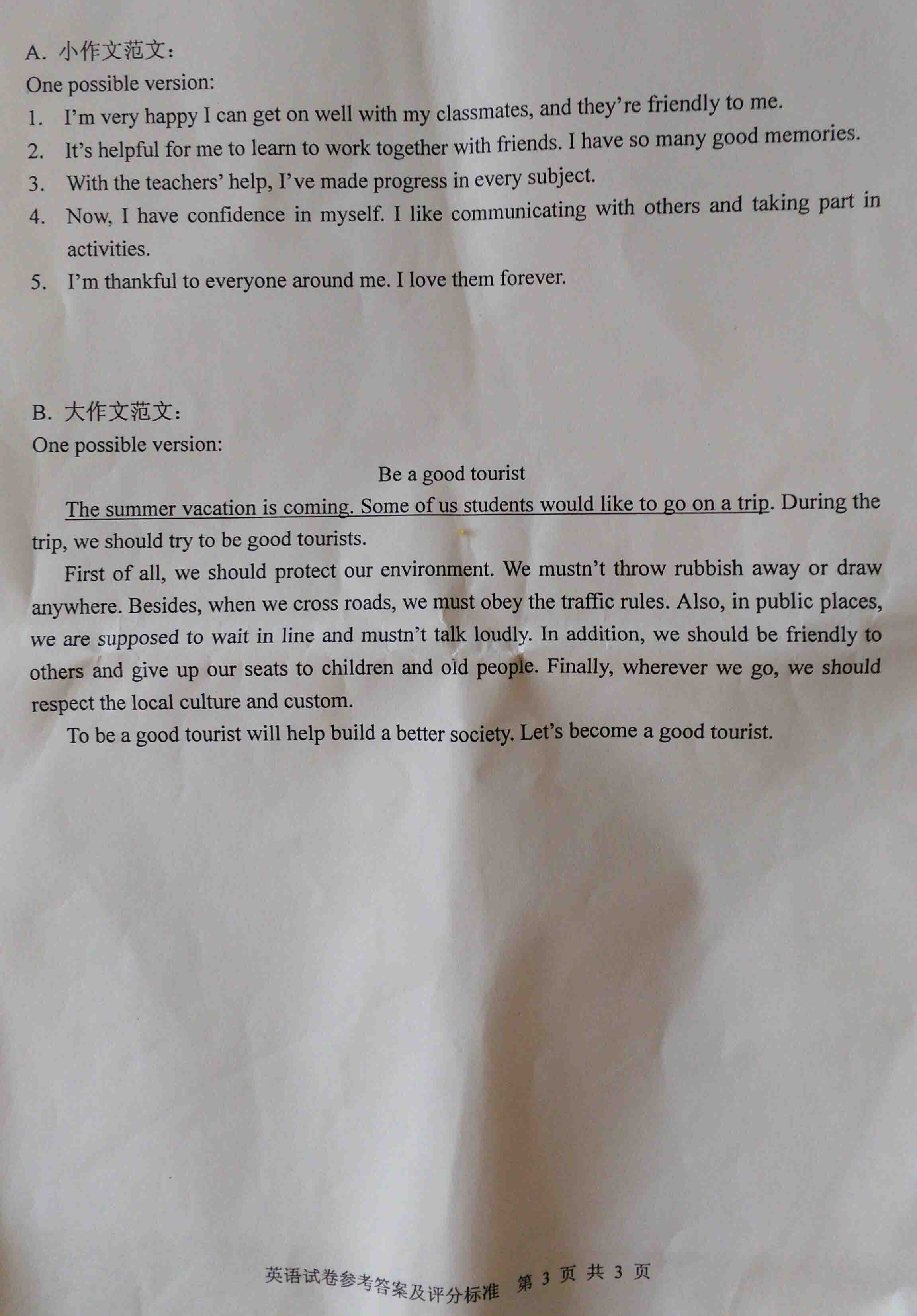 2015年遼寧錦州中考英語答案(已公布)