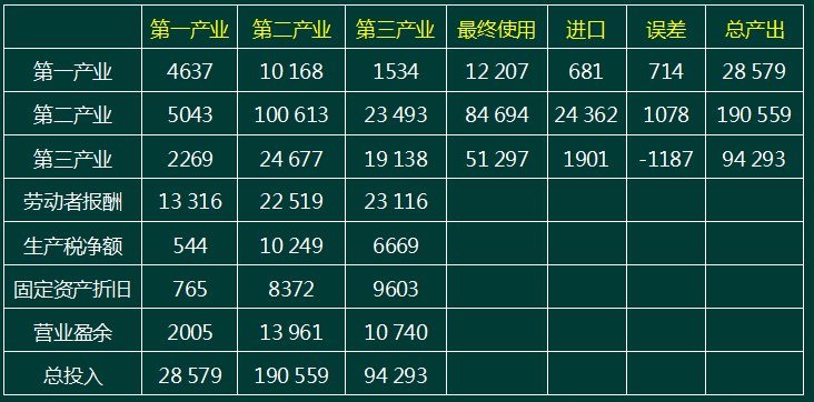 9. (二)我國2002年三次產(chǎn)業(yè)投入產(chǎn)出簡表如下 單位:億元