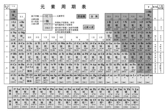 在化學(xué)學(xué)科領(lǐng)域中使用的元素周期表提供的信息更突出了元素的原子結(jié)構(gòu)信息。