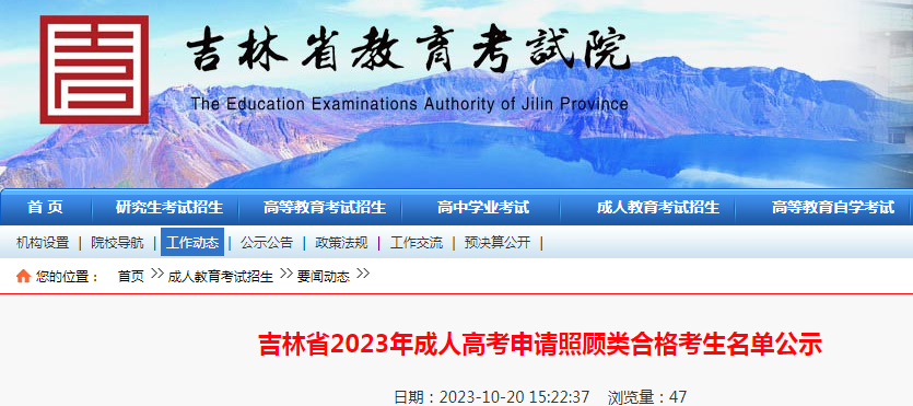 按照教育部辦公廳《關(guān)于做好2023年全國成人高校招生工作的通知》(教學(xué)廳〔2023〕7號(hào))和《關(guān)于做好吉林省2023年成人高等學(xué)校招生全國統(tǒng)一考試報(bào)名工作的通知》(吉招委〔2023〕6號(hào))規(guī)定,現(xiàn)將符合免試照顧、加分照顧條件的吉林省2023年成人高考考生名單進(jìn)行公示,詳見附件。