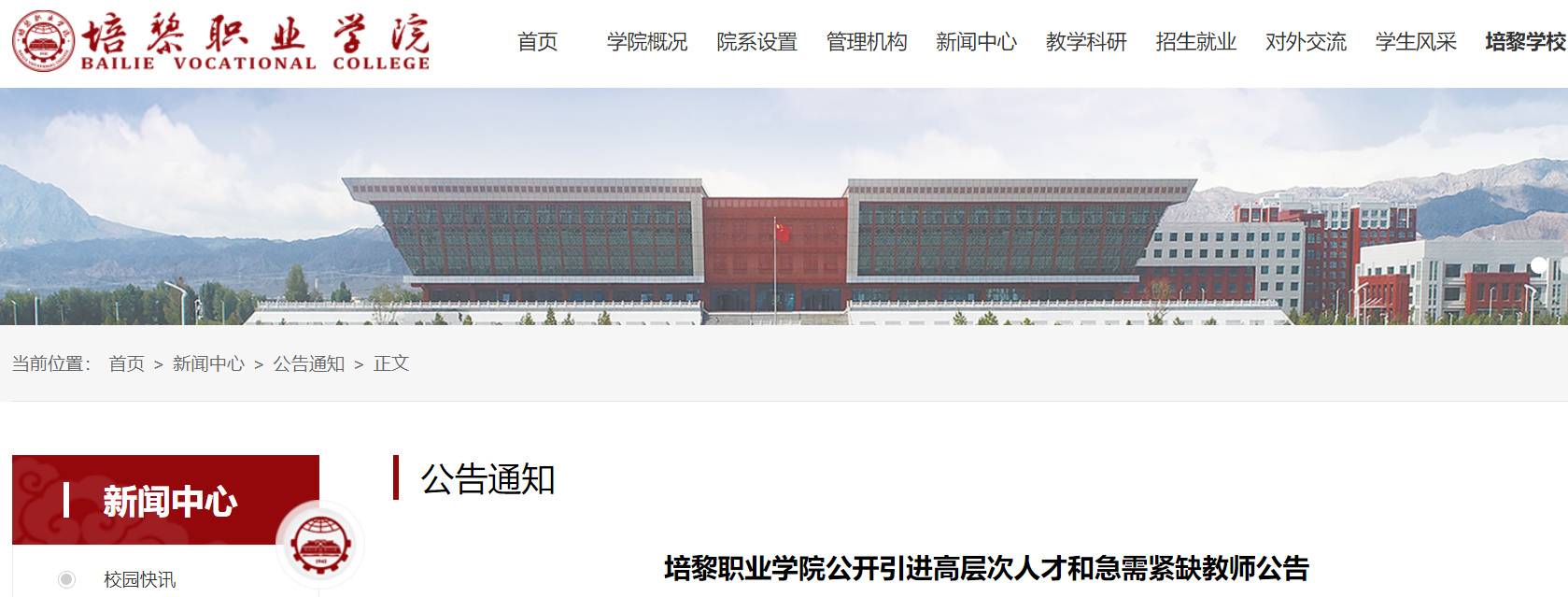 2022甘肅培黎職業(yè)學(xué)院公開(kāi)引進(jìn)高層次人才和急需緊缺教師公告已發(fā)布,報(bào)名時(shí)間:2022年2月16日-3月16日,現(xiàn)將招聘公告原文發(fā)布如下: