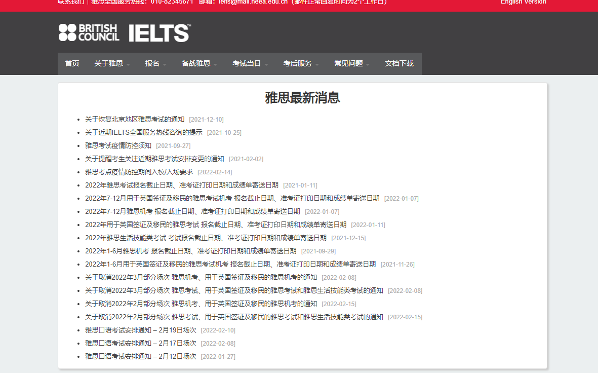 從中國教育考試網(wǎng)獲悉,取消2022年2月部分雅思考試、用于英國簽證及移民的雅思考試和雅思生活技能類考試的通知已公布,請相關(guān)人員仔細閱讀,具體詳情如下:
