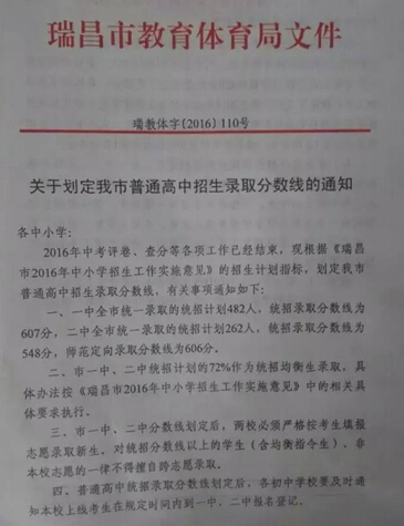 3、中招委要求一中、二中嚴(yán)格按錄取名單錄取學(xué)生,不得招收擇校生,學(xué)生不得跨校就讀;