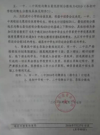 2、均衡生各初中錄一中最低分?jǐn)?shù)線分別為:四中442,五中490,城東 459,賽湖449,武山437,流莊442,碼頭420,夏畈427,南陽474,橫立420,高豐465,洪下474,花園450,肇陳445,洪一 454,樂園463,范鎮(zhèn)420,橫港503,南義467,早校423,銅城492(一中線下,市均衡線以上,已調(diào)劑錄入二中,市均衡線已張貼在辦公樓玻璃門上);