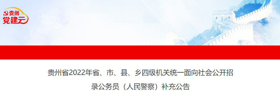 貴州省2022年省、市、縣、鄉(xiāng)四級機關(guān)統(tǒng)一面向社會公開招錄公務(wù)員(人民警察)補充公告