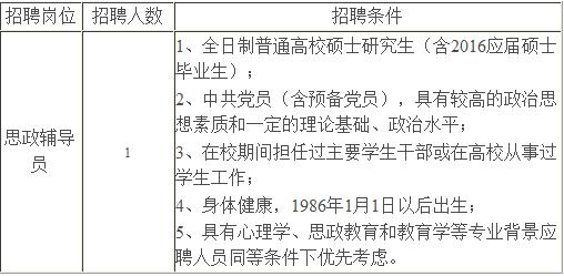 因?qū)W院事業(yè)發(fā)展的需要,特向社會(huì)公開招聘學(xué)院思政輔導(dǎo)員(人事代理)1名。具體事項(xiàng)及要求如下: