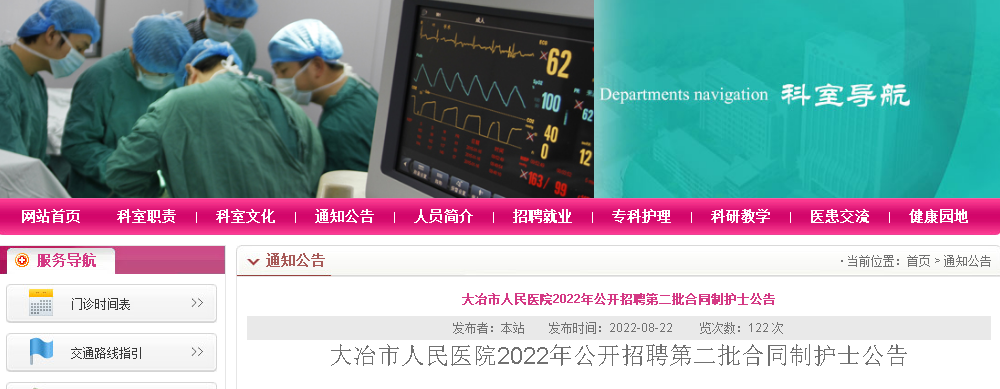 在大冶市人民醫(yī)院網(wǎng)站發(fā)布招聘信息。
