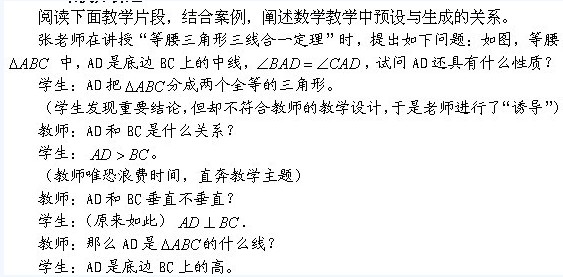 閱讀下面教學(xué)片段,結(jié)合案例,闡述數(shù)學(xué)教學(xué)中預(yù)設(shè)與生成的關(guān)系。