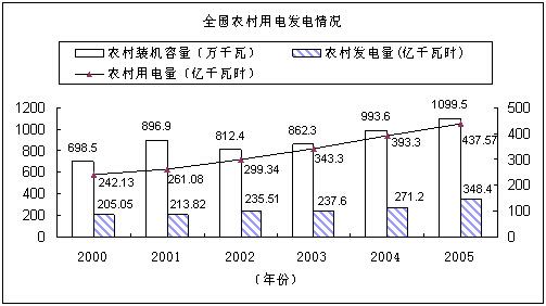 B.我國農(nóng)村發(fā)電量增長速度最慢的年份是2003年