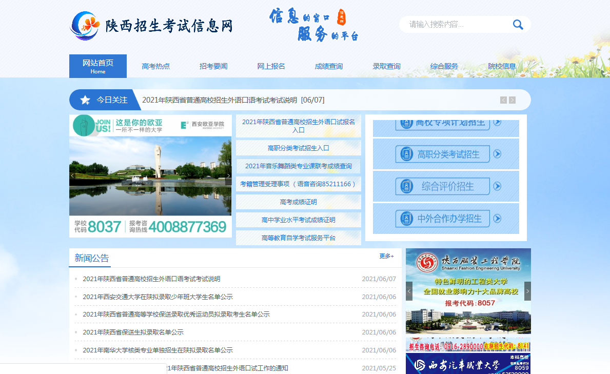 2021年陜西高考成績查詢系統(tǒng)入口將在陜西招生考試信息網開通,請廣大考生認準官方網站【陜西招生考試信息網】。