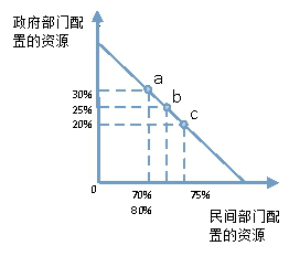 14. 讀圖,在市場(chǎng)經(jīng)濟(jì)條件下,政府的資源配置與市場(chǎng)的資源配置存在著各種比例的組合,如a、b、c點(diǎn)等。如果公眾期望的配合點(diǎn)在b點(diǎn),而實(shí)際的資源配置組合點(diǎn) 又恰好在b點(diǎn),此時(shí)便達(dá)成了一項(xiàng)社會(huì)均衡的資源配置。若要使財(cái)政決策盡量符合公眾意愿,下列選項(xiàng)中,合理的做法及其理由是