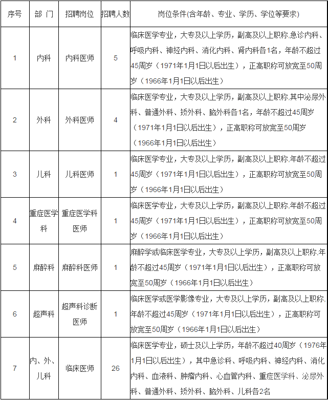2. 以上臨床醫(yī)師崗位不含中醫(yī)、中西醫(yī)結(jié)合專業(yè)。