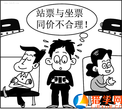 【試題解析】漫畫的觀點(diǎn)認(rèn)為“站票與坐票同價(jià)不合理”,其合理性在于鐵路部門為無座乘客與有座乘客提供的服務(wù)價(jià)值不等,如果以相同的價(jià)格出售則違背了價(jià)值規(guī)律,故①③說法合理。②的說法不符合漫畫反映的情況,應(yīng)排除;④認(rèn)為使用價(jià)值決定價(jià)格的說法是錯(cuò)誤的,應(yīng)排除?!緟⒖即鸢浮緾