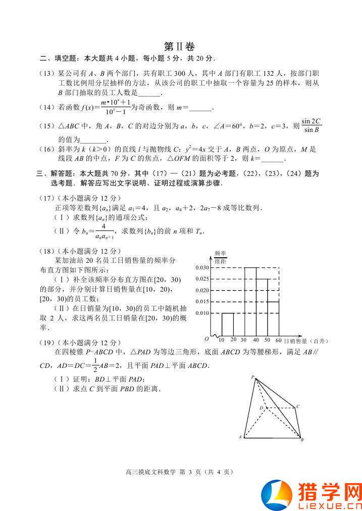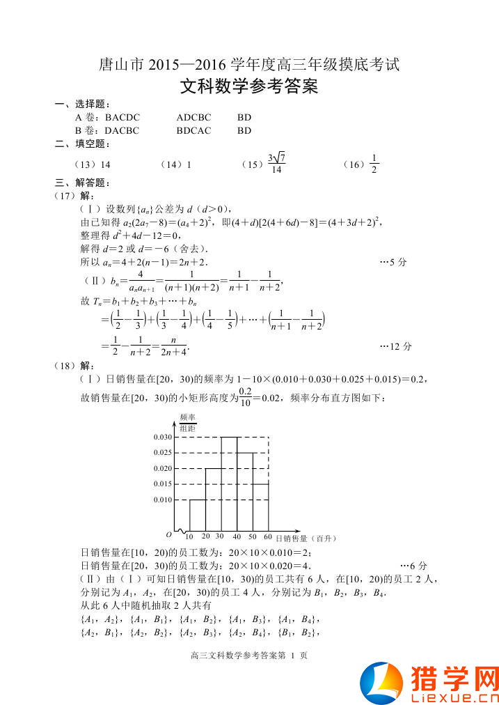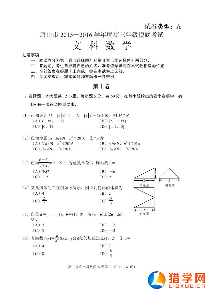2016年唐山市高考數(shù)學模擬試題(文科)