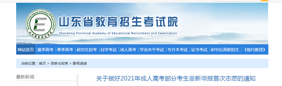 從山東省教育招生考試院了解到,山東關(guān)于做好2021年成人高考部分考生重新填報(bào)首次志愿的通知,現(xiàn)將有關(guān)事宜通知如下: