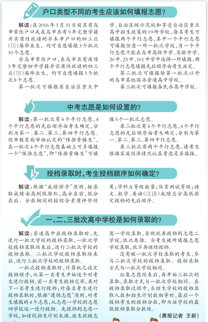 昨日,烏市教育局召開2016年高中招生政策解讀會(huì)議,就中考期間以及中考過(guò)后師生及家長(zhǎng)關(guān)心的難點(diǎn)、熱點(diǎn)問題進(jìn)行了政策解讀。