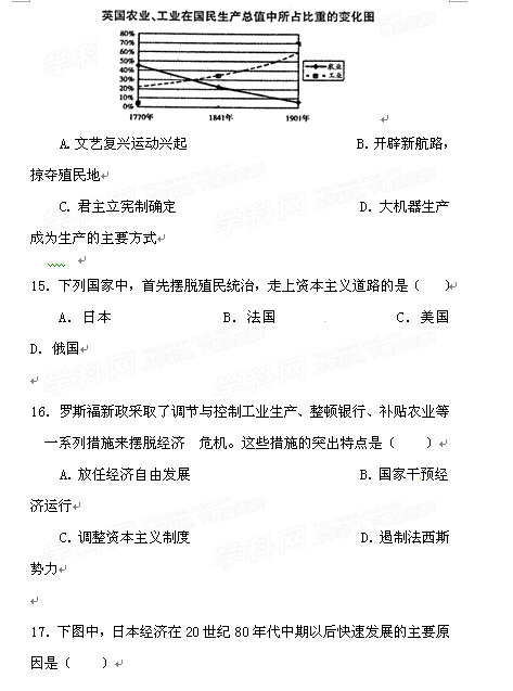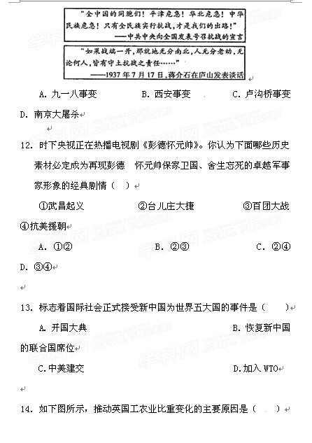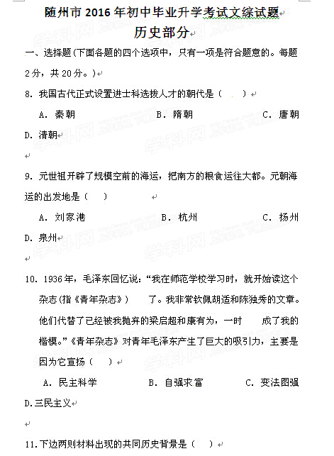 2016年湖北隨州中考?xì)v史試題(已公布)