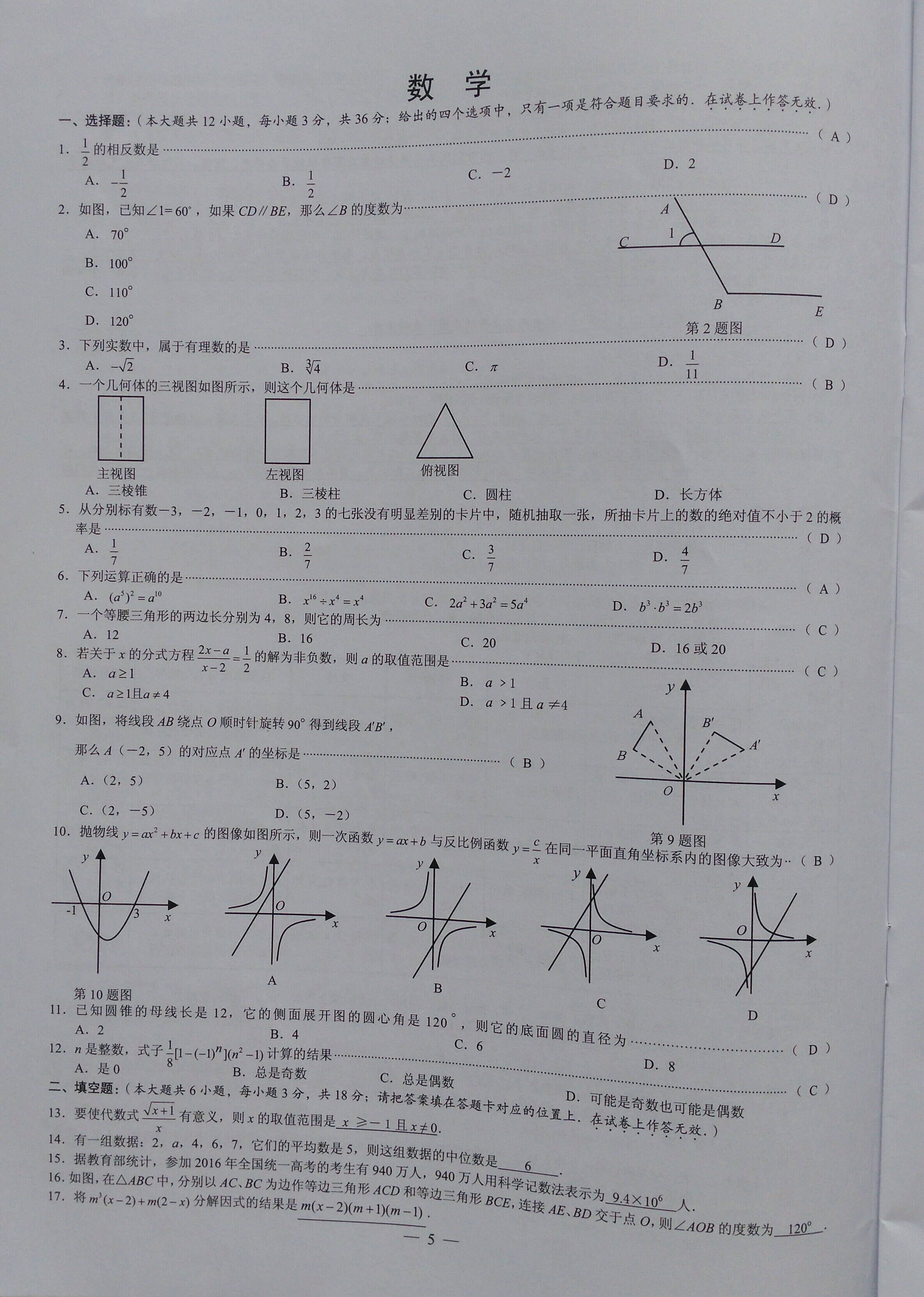 2016年廣西賀州中考數(shù)學試卷及答案(已公布)
