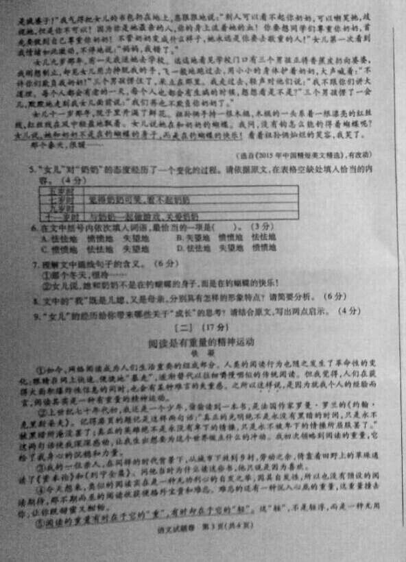 2016年安徽宣城中考語(yǔ)文試題(已公布)