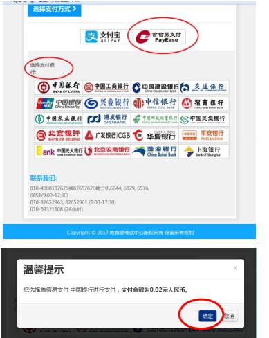 若選擇“首信易支付”,選擇“支付銀行”,點(diǎn)擊“確定”,頁面跳轉(zhuǎn)至銀行界面進(jìn)行支付。