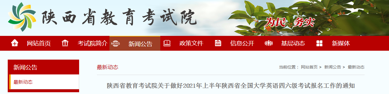 從陜西省教育考試院發(fā)布的《2021上半年陜西省全國(guó)大學(xué)英語四六級(jí)考試報(bào)名工作的通知》得知,2021上半年陜西英語六級(jí)報(bào)名時(shí)間、流程及入口已公布,3月23日至4月6日進(jìn)行報(bào)名,具體詳情如下: