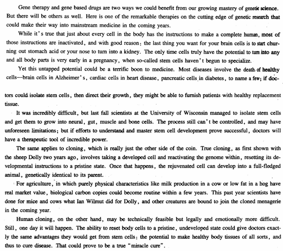 1. The writer holds that the potential to make healthy body tissues will _______。