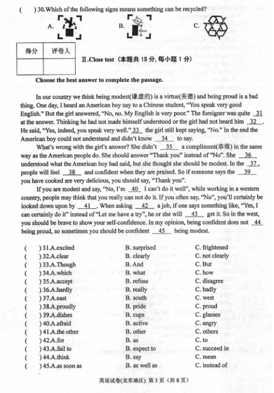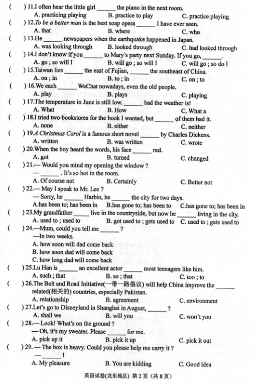 2016年黑龍江佳木斯中考英語試題(已公布)