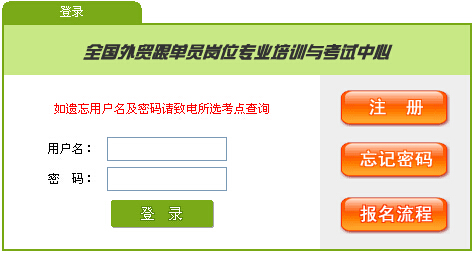 2016河北跟單員考試報(bào)名入口于6月1日報(bào)名開始至10月20日期間開通,考生可登陸全國外貿(mào)跟單員考試中心www.gdy.net.cn進(jìn)行報(bào)名。