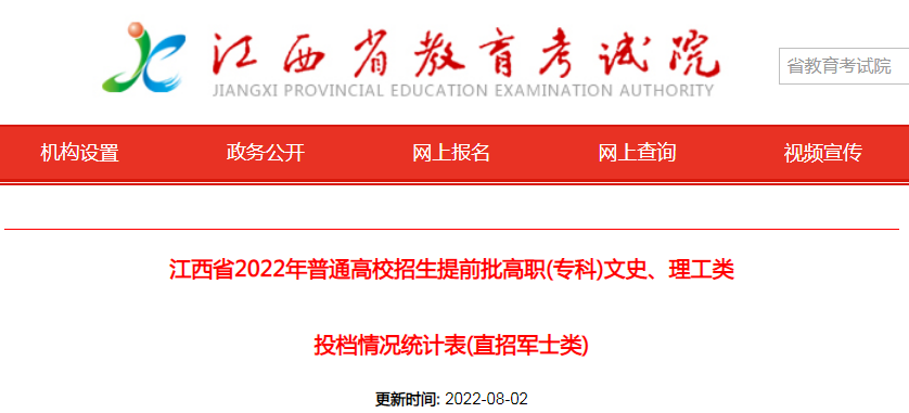從江西省教育考試院了解到,江西2022年普通高校招生提前批高職(???文史、理工類投檔情況統(tǒng)計(jì)表(直招軍士類)已公布,詳細(xì)內(nèi)容如下: