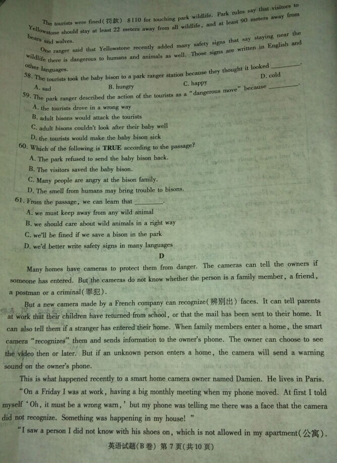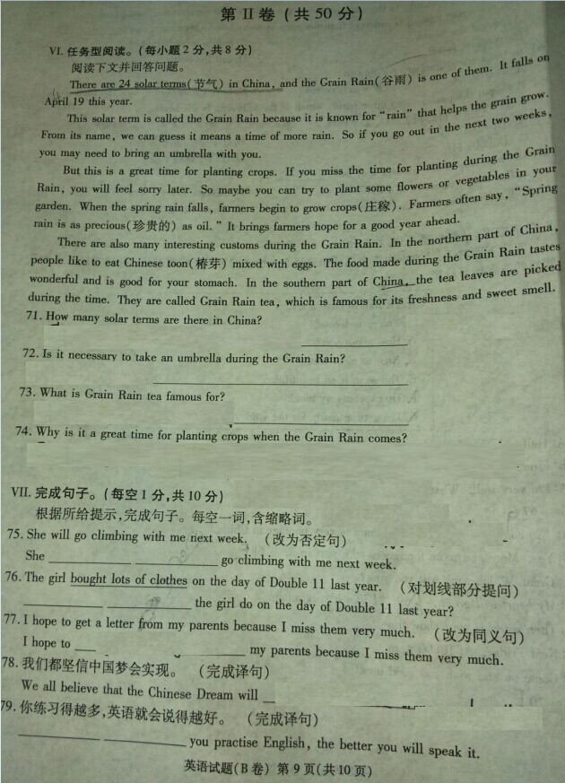 2016年重慶涪陵中考英語試題B卷(已公布)