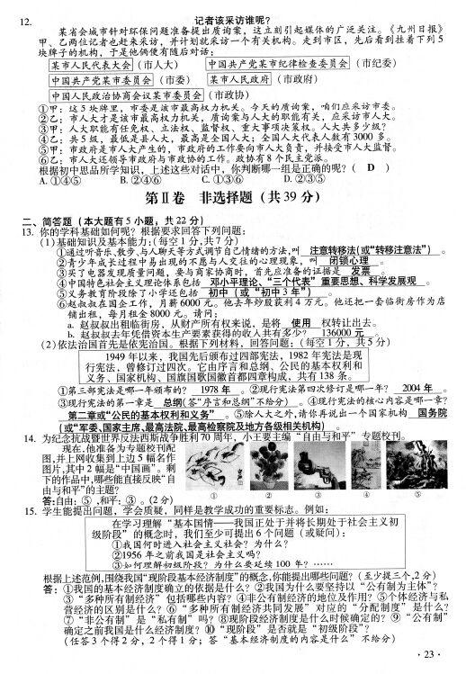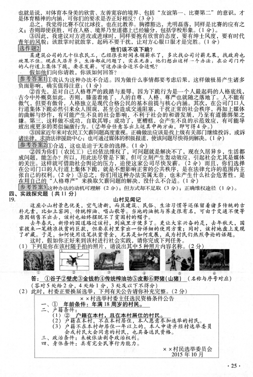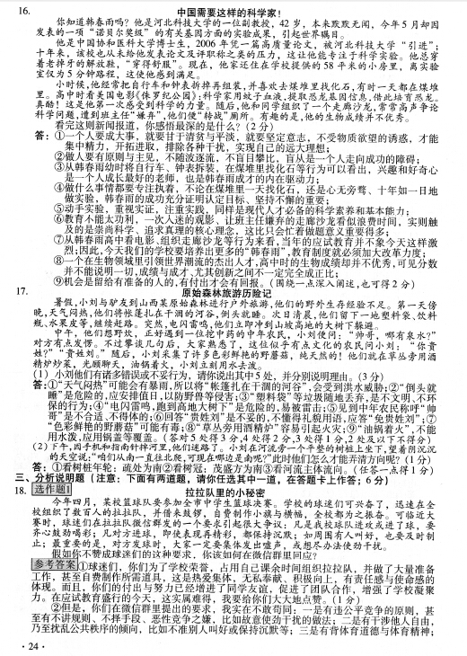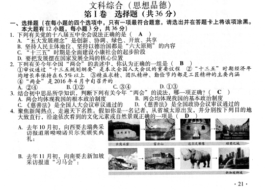 2016年山西太原中考政治試卷及答案(已公布)