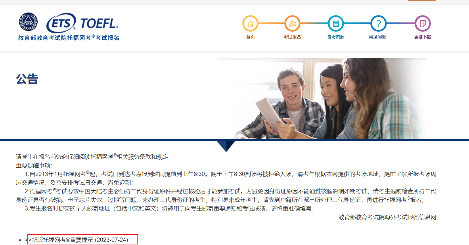 從中國(guó)教育考試網(wǎng)獲悉,2023年7月26日正式啟動(dòng)實(shí)施新版托福網(wǎng)考!重要提示及注意事項(xiàng)已公布,具體詳情如下: