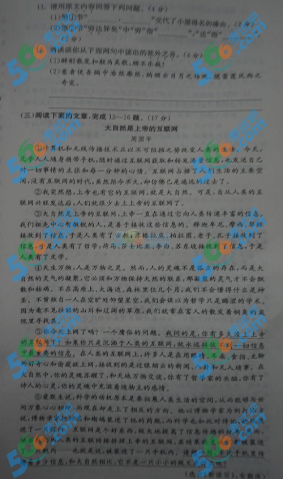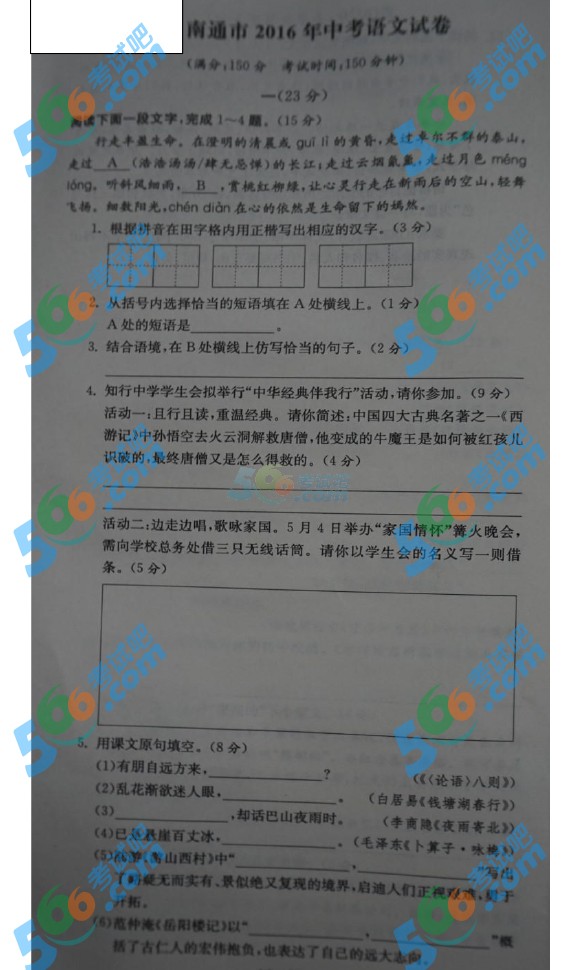 2016年江蘇南通中考語文試題
