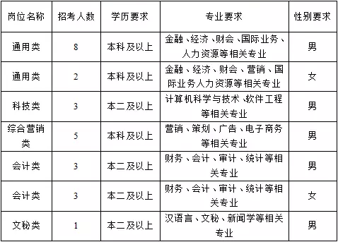具體崗位、學(xué)歷及專業(yè)要求詳見招聘職位。