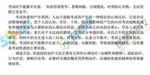 問(wèn)題:請(qǐng)結(jié)合材料,說(shuō)明中學(xué)生考試焦慮的主要表現(xiàn),產(chǎn)生的原因和調(diào)方法。(18分)