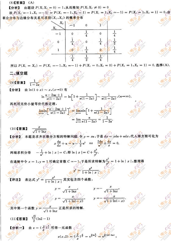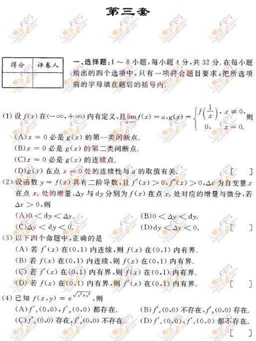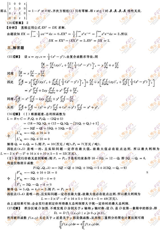 2017考研數(shù)學(xué)三沖刺試題及答案解析(三)