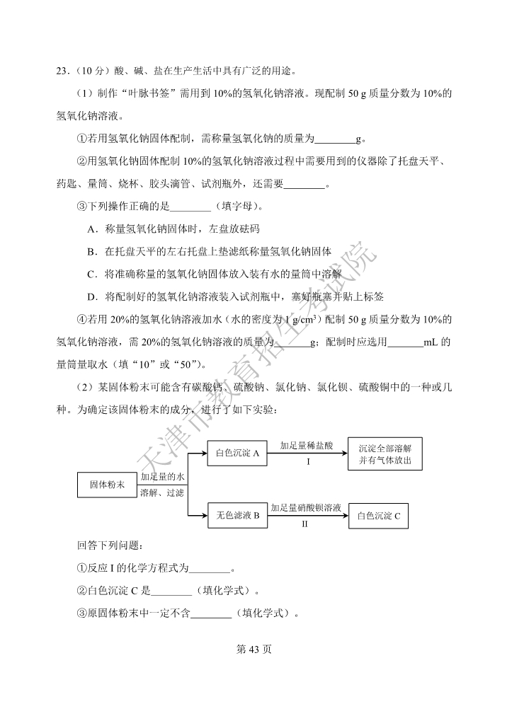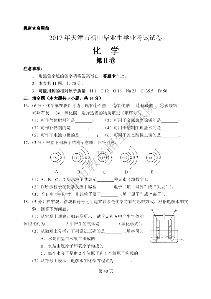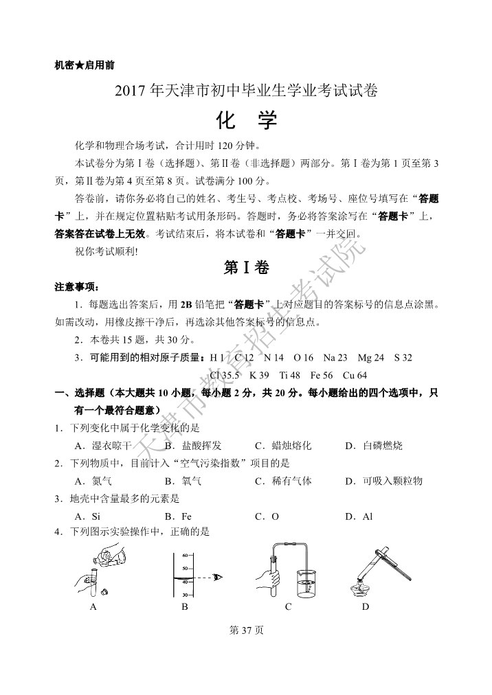 人生處處是考場(chǎng),今日各為中考忙。斗智斗勇齊亮相,得失成敗走一場(chǎng)??紙?chǎng)瀟灑不虛枉,多年以后話滄桑!2017年天津河西中考化學(xué)科目考試已落下帷幕,在考后第一時(shí)間提供天津河西中考化學(xué)試題及答案解析,供廣大考生參考估分。預(yù)祝各位考生取得優(yōu)異的成績(jī),順利考入理想的高中!