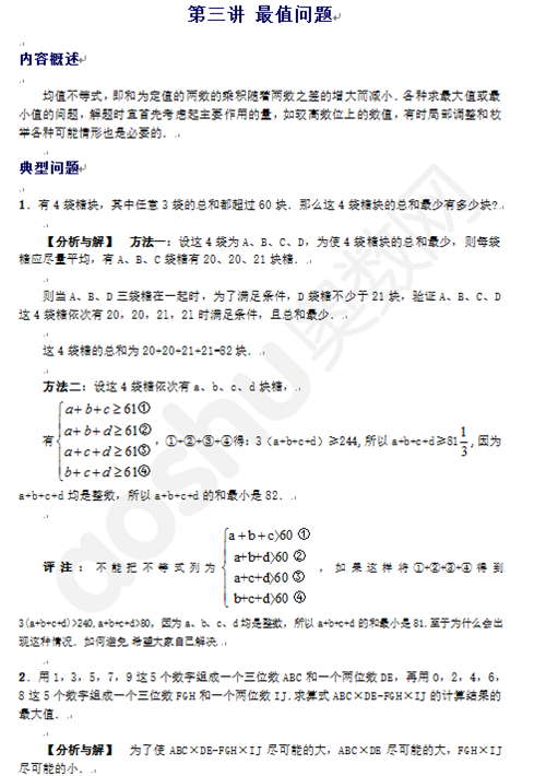 小升初數(shù)學(xué)十大??純?nèi)容:最值問題