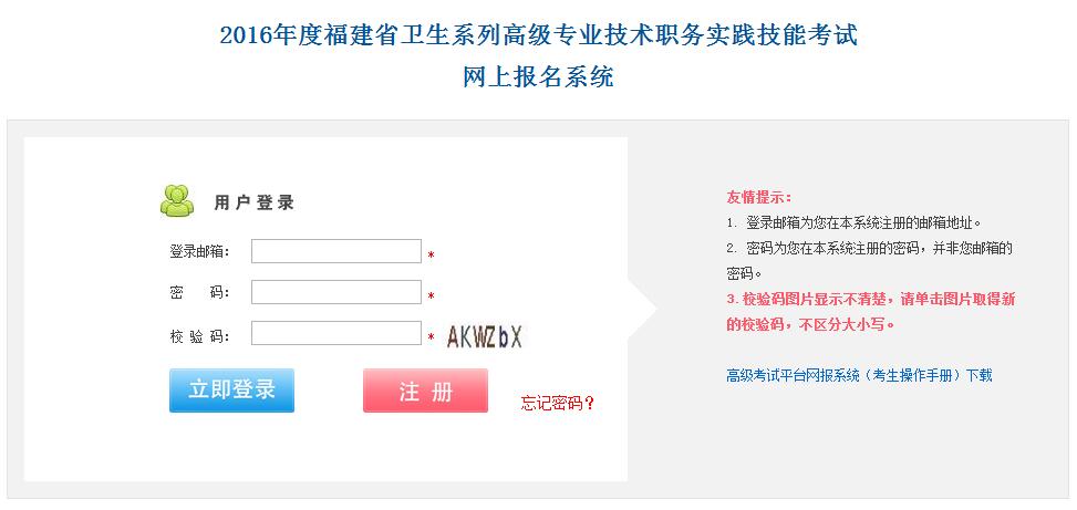 2016年度福建省衛(wèi)生系列高級專業(yè)技術職務實踐技能考試 網(wǎng)上報名入口>>