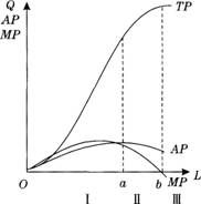 設(shè)總產(chǎn)量為Q,可變的勞動要素投入為L,平均產(chǎn)量為AP,邊際產(chǎn)量為MP,則有: