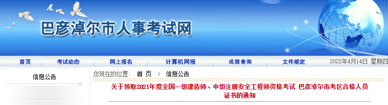2021年度全國一級建造師、中級注冊安全工程師資格考試成績已經(jīng)公布,巴彥淖爾市考區(qū)合格人員請于2022年4月13——15日到巴彥淖爾人事考試中心(地址:巴彥淖爾市人力資源和社會保障局大樓7017室)領(lǐng)取證書。領(lǐng)取時需攜帶本人身份證,代領(lǐng)證書需攜帶考生本人身份證及代領(lǐng)人身份證、身份證復(fù)印件。(巴彥淖爾考生郵寄郵箱bsrskszx@163.com,請寫明:報考名稱,報名審核點,考生姓名,聯(lián)系電話,收件地址,身份證原件照片,請考生不要重復(fù)發(fā)郵寄信息)。申請郵寄的考生,請耐心等待,我們會在集中發(fā)放證書后5-10個工作日郵寄。