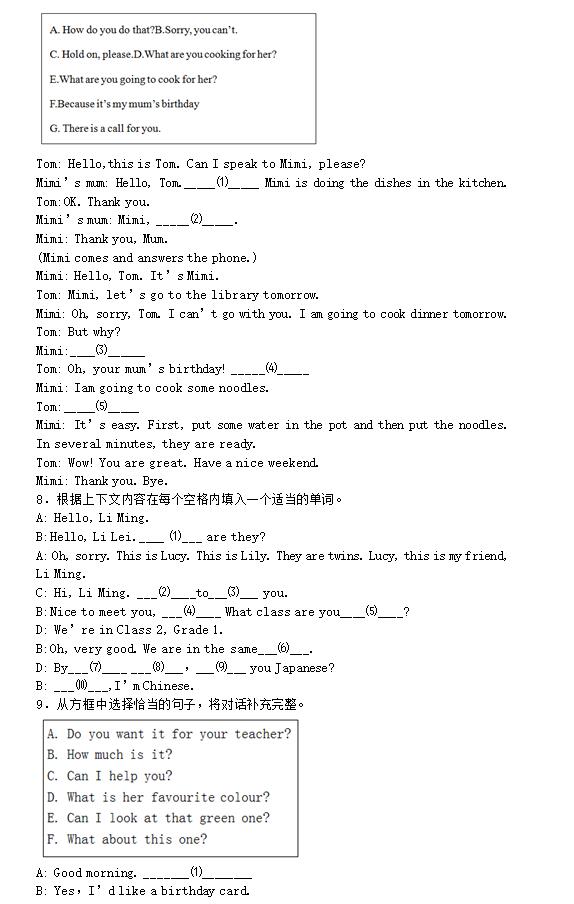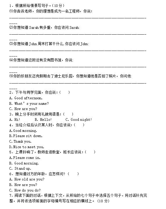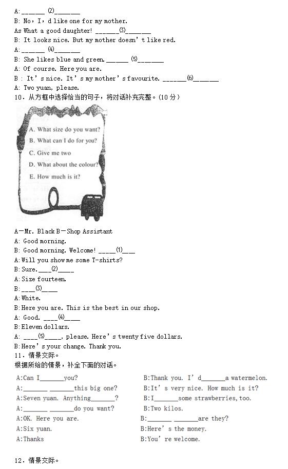 2017小升初英語高頻考點情景交際練習(xí)題